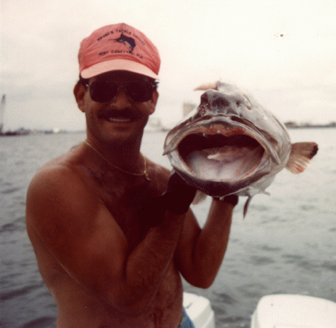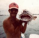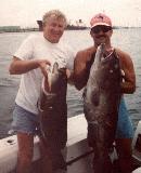 These BEAUTIFUL groupers were taken in the summer of 1997 in 90 ft of water 27 miles SW off Cape Canaveral Florida by LYNNWOOD JONES (left with 25 lb gag grouper) and MITCH ALLEN (right with 40 lb gag grouper).